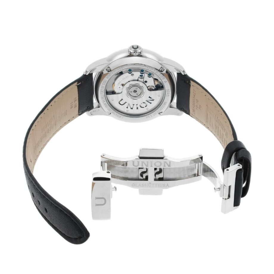 宇联表 Union Glashütte 腕表仅选用双面防眩目蓝宝石玻璃。蓝宝石玻璃表面可抗反光,尽显表盘之美。